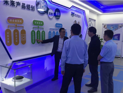 在現場指導補片車間、射頻生產線和支架中試車間后,葛均波院士分析了國內外醫療器械的發展現狀,指出了公司在研的疝修補補片、消融系列產品、鎂合金材料的工作方向。葛均波院士還就在公司現址建設CCI創新學院、技術轉化中心及在山海天舉辦創新論壇等工作提出了明確要求